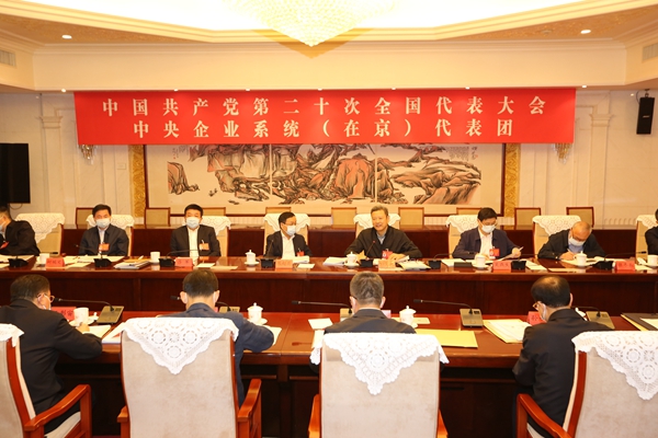 10月17日下昼和18日上午,,,,,,,,党的二十大中央企业系统(在京)代表团举行分组聚会,,,,,,,,继续认真学习讨论习近平总书记代表十九届中央委员会向党的二十大所作的报告。。。。。。。中央企业系统(在京)代表团团长郝鹏加入分组讨论,,,,,,,,代表团副团长钱智民、余剑锋划分主持分组讨论。。。。。。。