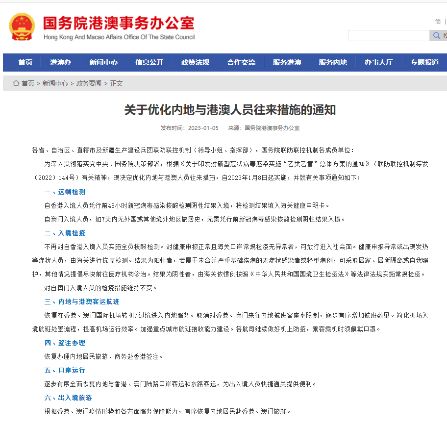 1ÔÂ5ÈÕ£¬£¬£¬£¬£¬¹úÎñÔºÁª·ÀÁª¿Ø»úÖÆ×ÛºÏ×éÐû²¼¡¶¹ØÓÚÓÅ»¯ÄÚµØÓë¸Û°ÄÖ°Ô±ÍùÀ´²½·¥µÄ֪ͨ¡·£¬£¬£¬£¬£¬×ÔÏã¸ÛÈ뾳ְԱƾÐÐǰ48Сʱйڲ¡¶¾Ñ¬È¾ºËËá¼ì²âÒõÐÔЧ¹ûÈë¾³£¬£¬£¬£¬£¬½«¼ì²âЧ¹ûÌîÈ뺣¹Ø¿µ½¡ËµÃ÷¿¨¡£¡£¡£¡£¡£