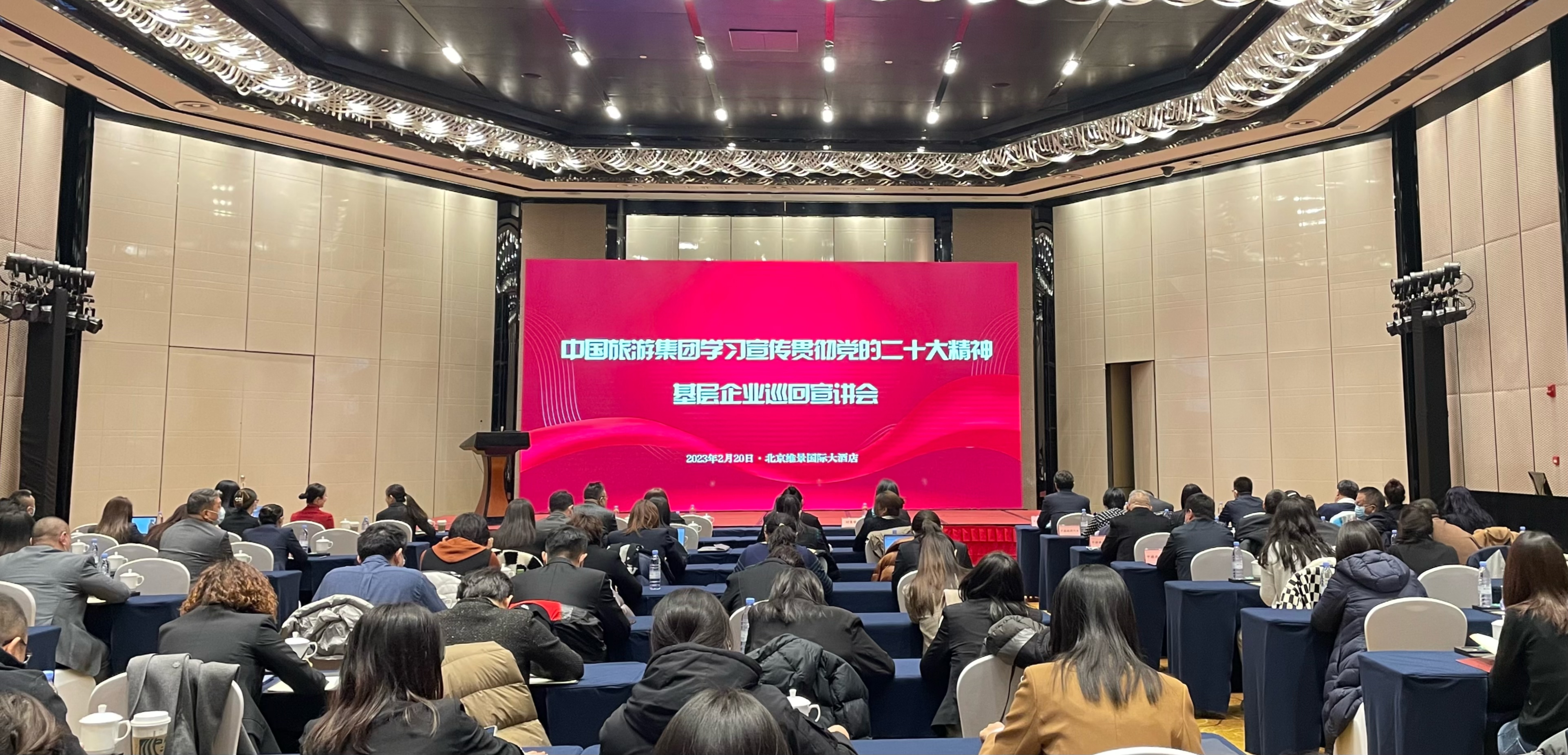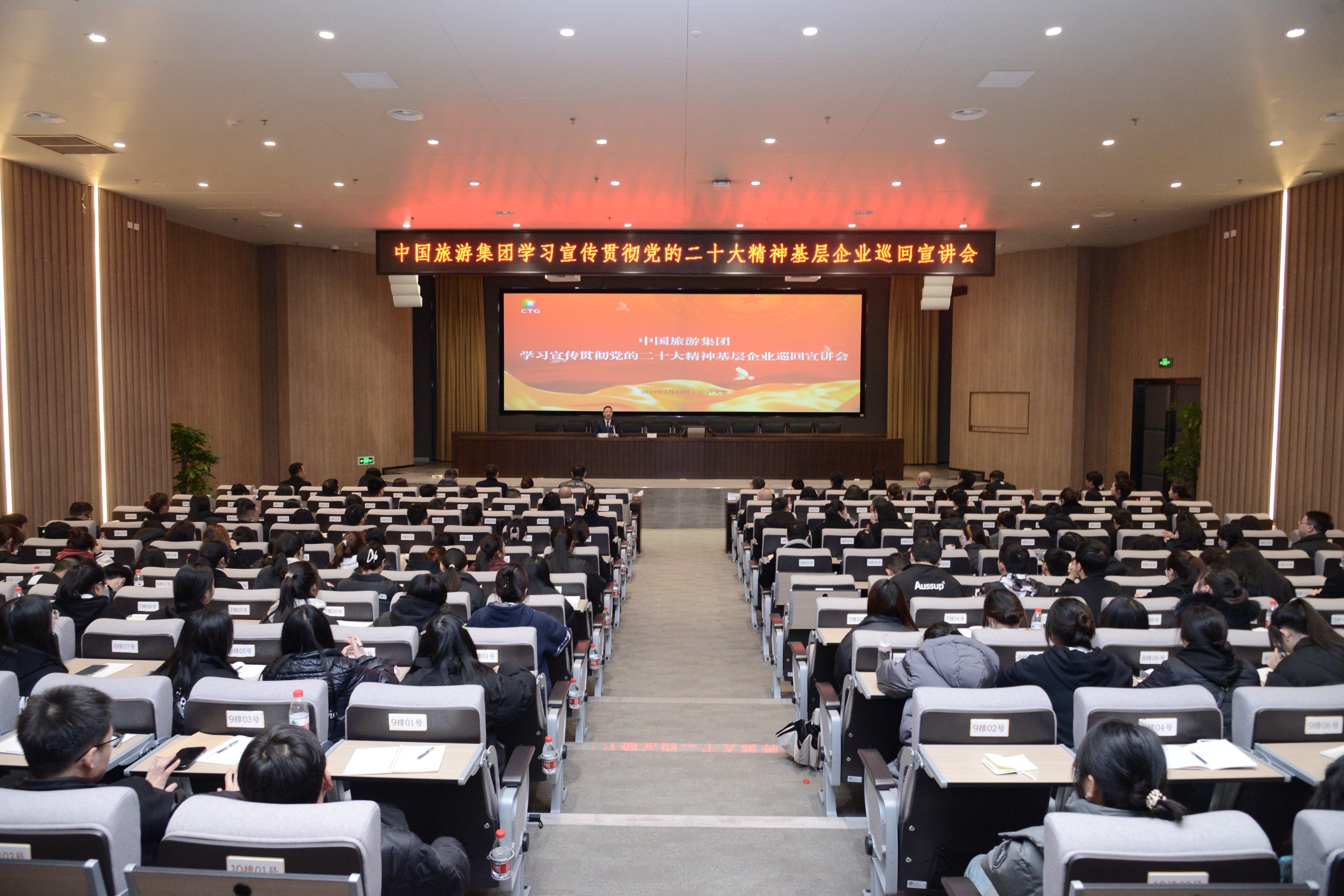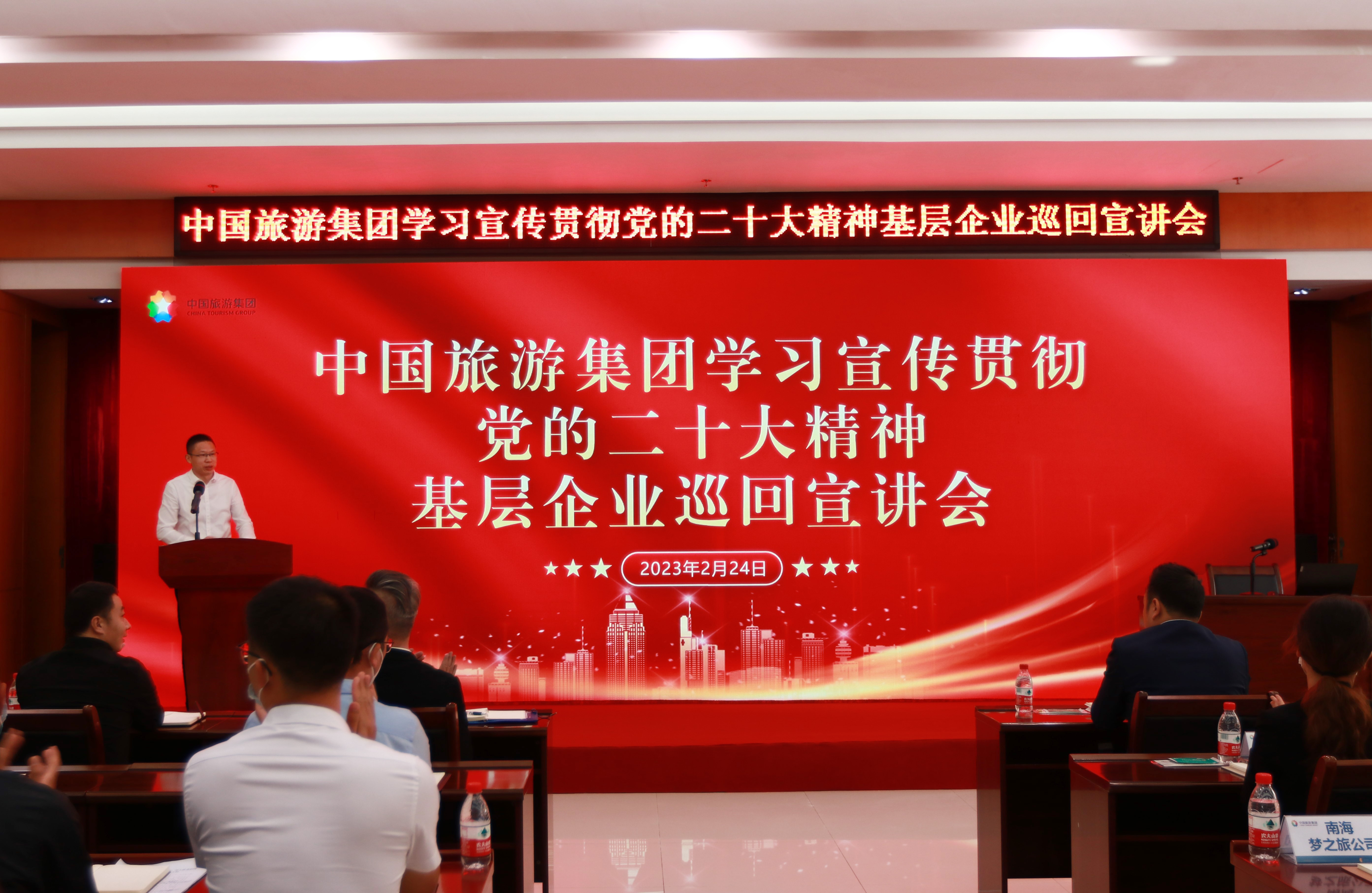 为推动学习宣传贯彻党的二十大精神直达下层、直通一线、走进员工,,,,,中国旅游集团学习宣传贯彻党的二十大精神下层企业巡回宣讲团克日先后赴北京、泸州、三亚、珠海、深圳等地,,,,,深入集团所属三、四级企业开展5场巡回宣讲,,,,,各事业群所属179个下层一线党组织、3342名党员干部员工通过线上线下等方法加入宣讲会。。。。。