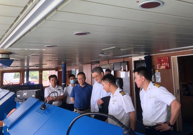王总旅行了“鼓浪屿”号公共区域,,,,,,实地探访了驾驶室、集控室、垃圾处置惩罚区域等海员事情生涯区域,,,,,,与一线海员深入相识船舶设施、装备的各项运营及维护情形。。。。。。。。