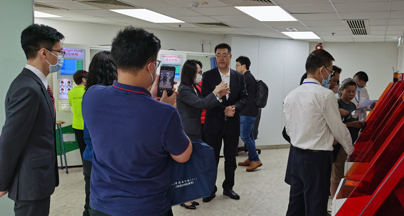 中秋、国庆双节时代,,,,,,集团石善博副总司理在9月29日、10月6日划分到证件营业部旺角暂时证件效劳中心、九龙东证件效劳中心和港车北上天水围验车点调研,,,,,,代表集团向全体事情职员致以节日慰问,,,,,,并就年底前怎样应对办证岑岭提出事情要求。。。。。。集团陈惠溪证件营业总监加入调研。。。。。。