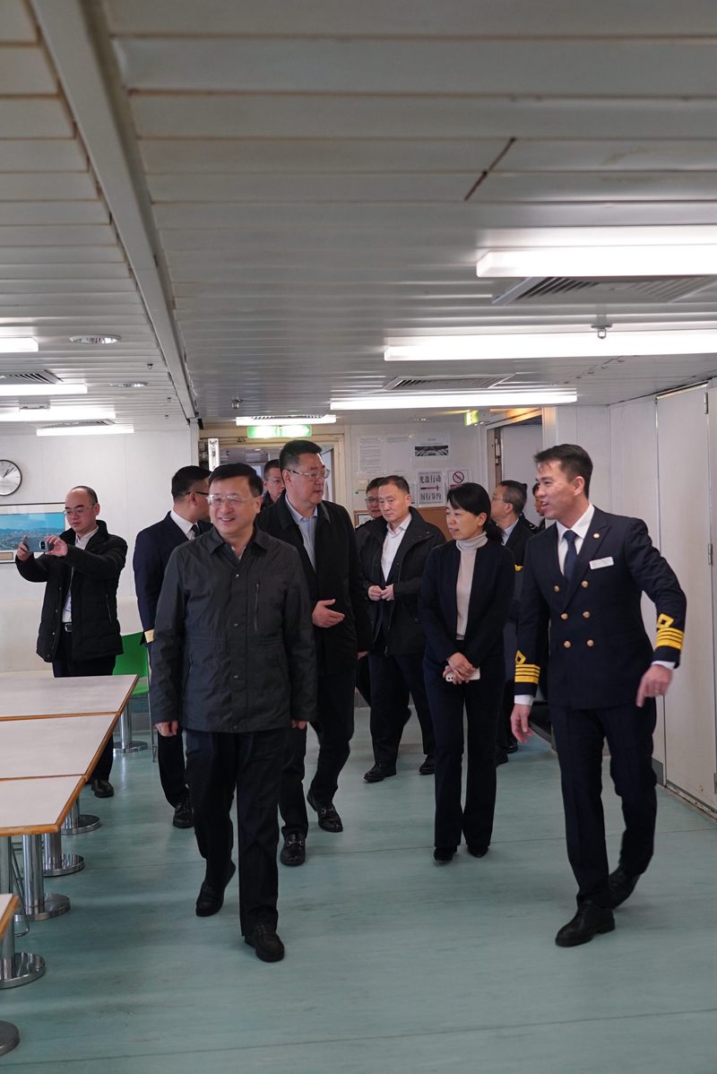 在新春佳节到来之际,,,,,,集团陈寅董事长、石善博副总司理一行在2月7日登上“鼓浪屿”号开展清静检查并举行节前慰问,,,,,,宝山区及驻区口岸单位、集团战发部、中原国际邮轮有关向导同志陪同。。。。。。。。