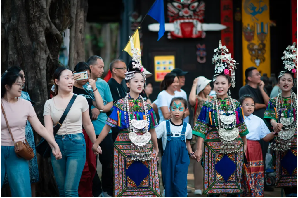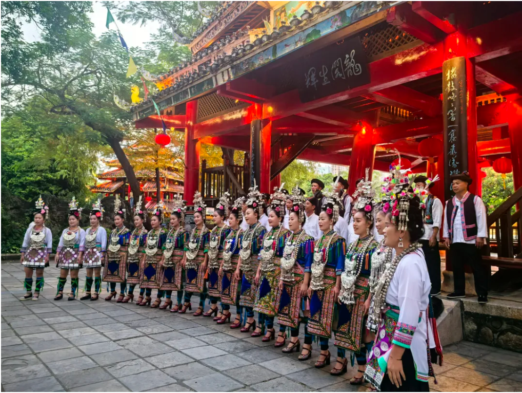10月1日至5日,,,,,,,由中国旅游集团帮扶资金支持贵州省黎平县黄岗村、平架村、县艺术团40名侗族歌手在深圳漂亮中华开展——2024年黄岗侗寨侗族大歌传承项目推广运动。。。。。