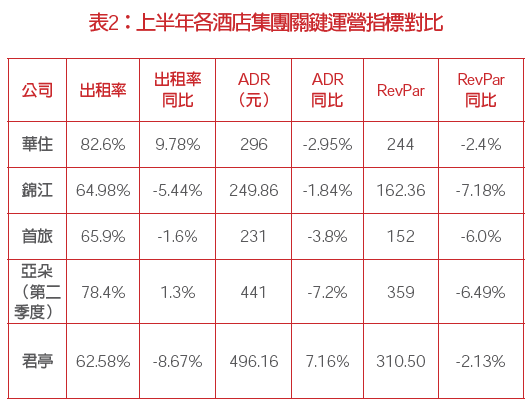 ÊÜÉϰëÄêºê¹ÛÏûºÄÒÔ¼°È¥Äê¸ß»ùÊýÓ°Ï죬£¬£¬£¬£¬£¬ÉϰëÄê¸÷´óÂùݼ¯Íųö×âÂÊÌåÏַֽ⣬£¬£¬£¬£¬£¬RevPAR¡¢ADRÔòÆÕ±é·ºÆðÏ»¬¡£¡£¡£¡£¡£¡£¡£ÉϰëÄ꣬£¬£¬£¬£¬£¬Êܺê¹Û¾¼Ã²»È·¶¨ÒÔ¼°ÏûºÄÕßÐÅÐÄȱ·¦µÈÒòËØÓ°Ï죬£¬£¬£¬£¬£¬ÉÌÂÃÐèÇó·½Ã棬£¬£¬£¬£¬£¬²îÂÃÔ¤ËãÊÕ½ô£¬£¬£¬£¬£¬£¬ÉÌÎñ²îÂÃÔ˶¯¸ü¶à¼¯ÖÐÔÚÖÐÐͼ»á¡£¡£¡£¡£¡£¡£¡£ÂÃÓÎÐèÇó·½Ã棬£¬£¬£¬£¬£¬ÏûºÄÐÅÐÄÏ»¬£¬£¬£¬£¬£¬£¬ÂùÝÐÐÒµÃæÁÙÏûºÄ·Ö¼¶µÄѹÁ¦£¬£¬£¬£¬£¬£¬±ðµÄ£¬£¬£¬£¬£¬£¬¶þ¼¾¶È×îÏȼ«¶ËÌìÆøÏÔ×Å£¬£¬£¬£¬£¬£¬³öÐÐïÔÌ¡£¡£¡£¡£¡£¡£¡£´Ó³ö×âÂÊÀ´¿´£¬£¬£¬£¬£¬£¬»ª×¡ºÍÑǶäÂùݼá³ÖÁËÕýÔöÌí£¬£¬£¬£¬£¬£¬»®·Öͬ±ÈÔöÌí9.78¸ö°Ù·ÖµãºÍ1.3¸ö°Ù·Öµã£»£»£»£»£»£»£»£»½õ½Í¬±ÈϽµ5.44¸ö°Ù·Öµã£¬£¬£¬£¬£¬£¬Ê×ÂÃÔò΢½µ1.6¸ö°Ù·Öµã£¬£¬£¬£¬£¬£¬¾ýͤÂùÝϽµ8.67¸ö°Ù·Öµã¡£¡£¡£¡£¡£¡£¡£´Óƽ¾ù·¿¼ÛºÍ¼ä·¿ÊÕÒæÀ´¿´£¬£¬£¬£¬£¬£¬ÑǶäºÍ¾ýͤÂùÝ×÷ΪÖи߶ËÂùݵĴú±í£¬£¬£¬£¬£¬£¬Æäƽ¾ù·¿¼ÛºÍ¼ä·¿ÊÕÒæÏÔןßÓÚ»ª×¡¡¢½õ½ºÍÊ×ÂÃÂùݣ¬£¬£¬£¬£¬£¬µ«´Óͬ±ÈÀ´¿´£¬£¬£¬£¬£¬£¬ÊÜÕûÌåºê¹ÛÇéÐμ°±°ÁÓÌìÆøÓ°Ï죬£¬£¬£¬£¬£¬ÑǶäºÍ¾ýͤÂùݵÄͬ±È½µ·ùÒ²½Ï´ó£¬£¬£¬£¬£¬£¬ÆäÖоýͤÂÃ¹ÝÆìÏÂа²½¾°À½ÂùÝÔâÊܵÄÒ»Á¬´óÓêºÍºéÀÔÔÖÄÑÖÂʹÂùÝÐÝÒµ¿¹ÔÖ³¤´ï°ëÔÂÖ®¾Ã¡£¡£¡£¡£¡£¡£¡£»£»£»£»£»£»£»£»ª×¡¼¯ÍÅÔ¤¼Æ½ñÄê7¡¢8Á½ÔÂÊîÆÚÊý¾Ý½«Í¬±ÈϽµ10%×óÓÒ¡£¡£¡£¡£¡£¡£¡£