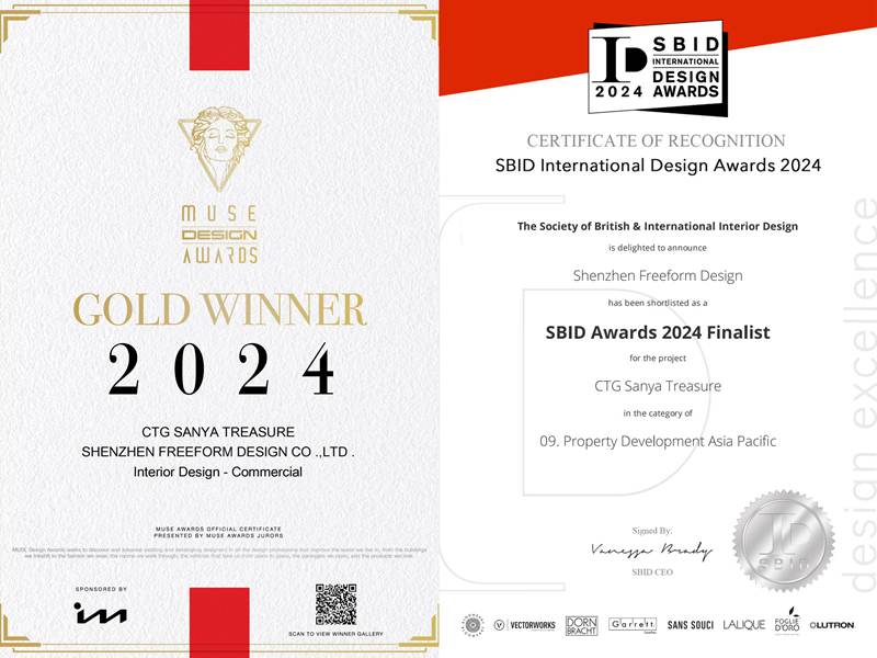 缪斯设计奖(MUSE Design Awards)设立于2015年,,,,,,是国际奖项协会IAA(International Awards Associate)旗下的全球性奖项赛事之一,,,,,,素有“设计界奥斯卡”之称。。。。。。。英国SBID国际设计大奖(The SBID International Design Awards)设立于2009年,,,,,,每年评选表扬兼具手艺含量与美学创意的优异设计,,,,,,是设计行业颇具声望的奖项之一。。。。。。。中旅投资将总结中旅·馥棠公馆产品设计的乐成履历,,,,,,将先进的设计理念运用到其他项目中,,,,,,一连打造有特色、高品质的精品产品。。。。。。。