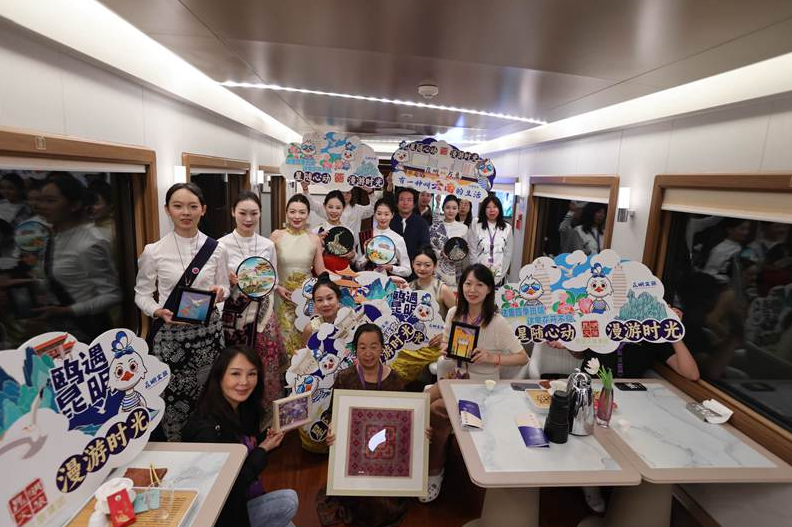 行程中,,,,,,,“星光·澜湄号”列车特殊安排了非遗文化讲座和富厚多彩的非遗互动体验,,,,,,,约请了多位非遗传承人与嘉宾们配合体验剪纸、面塑、彝族(撒尼)刺绣、掐丝搪瓷彩画等非遗项目,,,,,,,还准备了云南非遗名特小吃,,,,,,,让嘉宾们在周游时光中深刻感受“有一种叫云南的生涯”。。。。。。。此次“星光·澜湄号”非遗主题文化专列之旅,,,,,,,不但为嘉宾们提供了全新的旅游体验,,,,,,,更是文旅融合、交旅融合的一次生动实践。。。。。。。