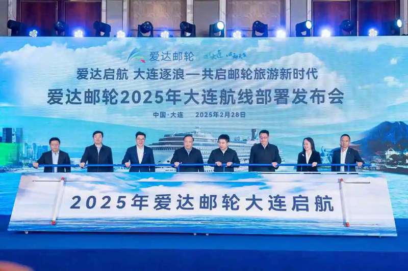 2月28日,,,,,,爱达邮轮在大连举行2025年大连航线安排宣布会。。。。。宣布会上,,,,,,爱达邮轮与大连市文化和旅游局签署战略相助协议,,,,,,与3家旅行社签署销售相助协议。。。。。
