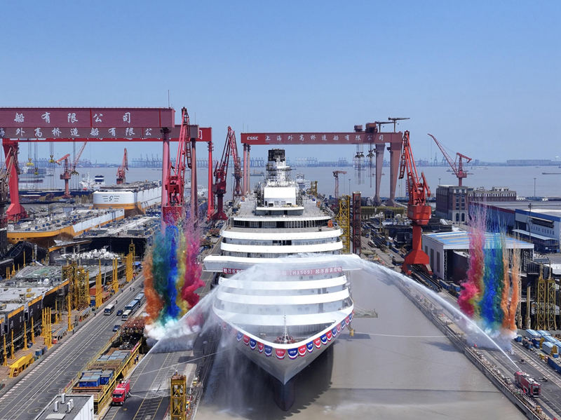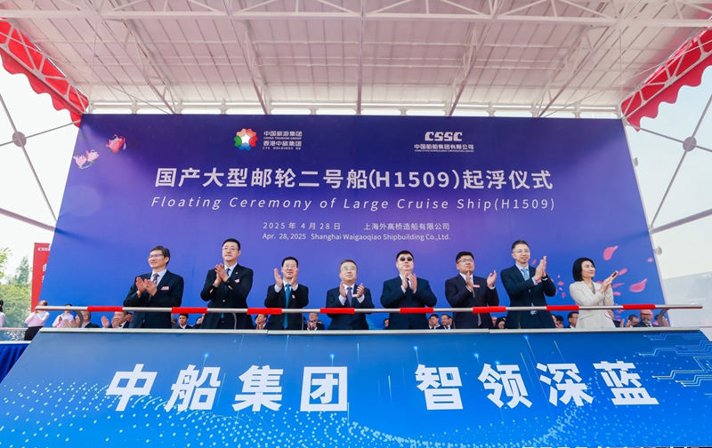 4月28日,,,,,,,第二艘国产大型邮轮“爱达·花城号”在上外洋高桥造船有限公司顺遂实现坞内起浮。。。。。工信部装备工业二司司长徐春荣、文旅部工业生长司副司长马力,,,,,,,中国船舶集团总司理王国强、副总司理胡贤甫,,,,,,,集团总司理范云军、董事兼中原国际邮轮董事长石善博,,,,,,,上海市经济和信息化委员会副主任蒲亚鹏、浦东新区副区长李慧等出席仪式。。。。。