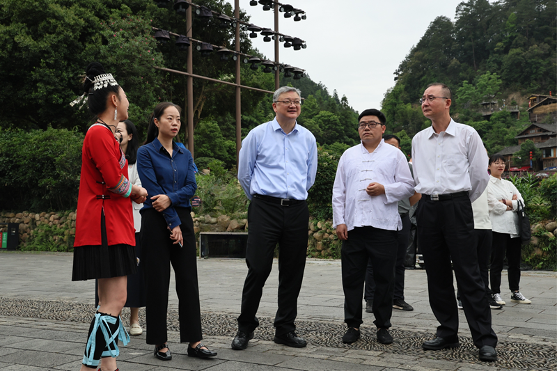 在黎平时代,,,,,,王海民一行沿着总书记的考察蹊径,,,,,,深入肇兴侗寨调研侗族文化展示中心,,,,,,侗乡织、染、绣特色工业基地,,,,,,集团帮扶项目侗族大歌研学基地,,,,,,详细相识民族文化传承、墟落旅游工业发动和群众受益增收等情形,,,,,,并代表集团向导班子探望慰问挂职干部。。。。。。。。