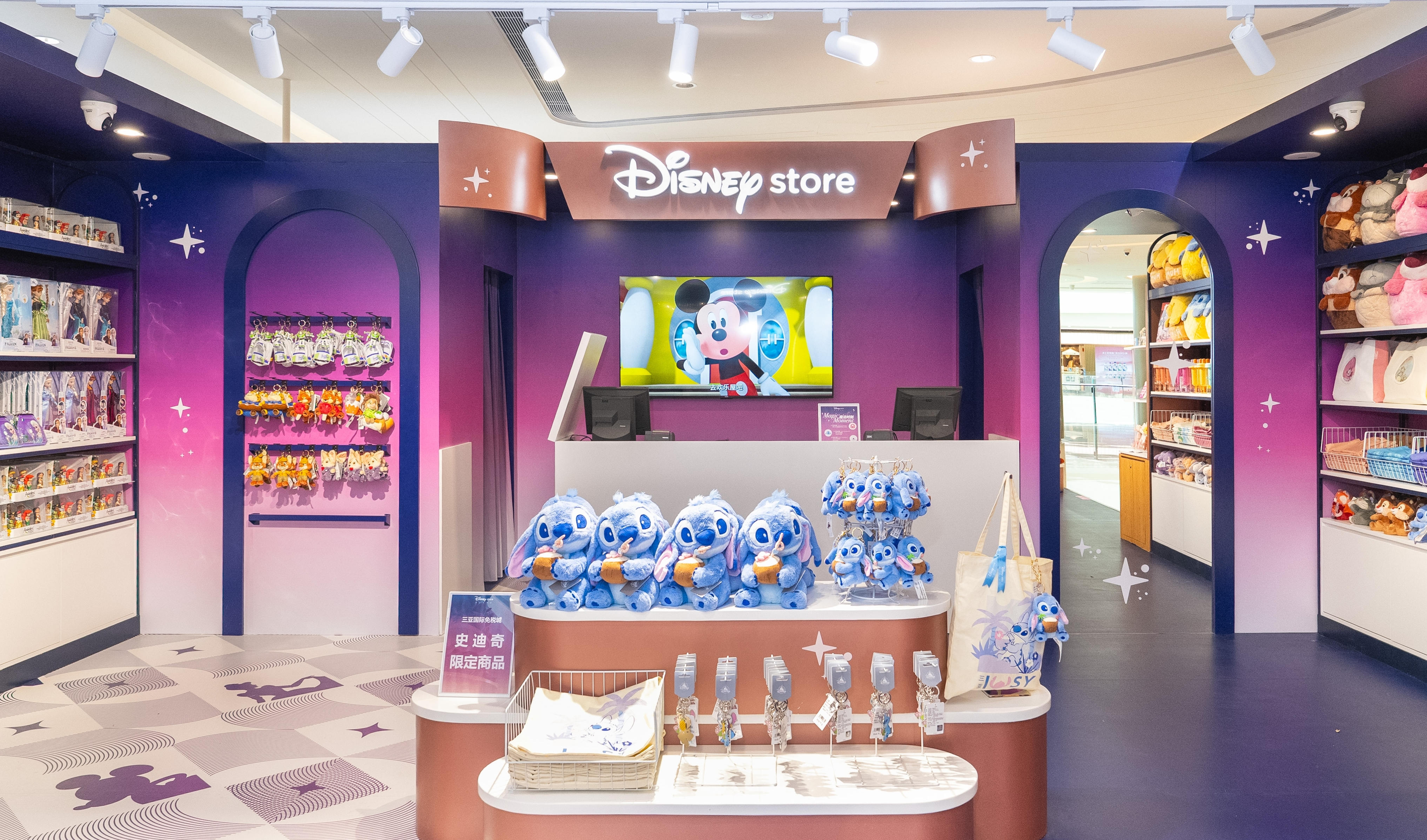 7月6日,,,,,,,,三亚首家迪士尼主题快闪市肆在三亚国际免税城正式开业。。。。。该店以“史迪奇周游快闪”为主题,,,,,,,,推出多款史迪奇系列三亚限制产品,,,,,,,,以及米奇和朋侪们、猖獗动物城等迪士尼经典形象,,,,,,,,吸引众多消耗者前来打卡体验。。。。。