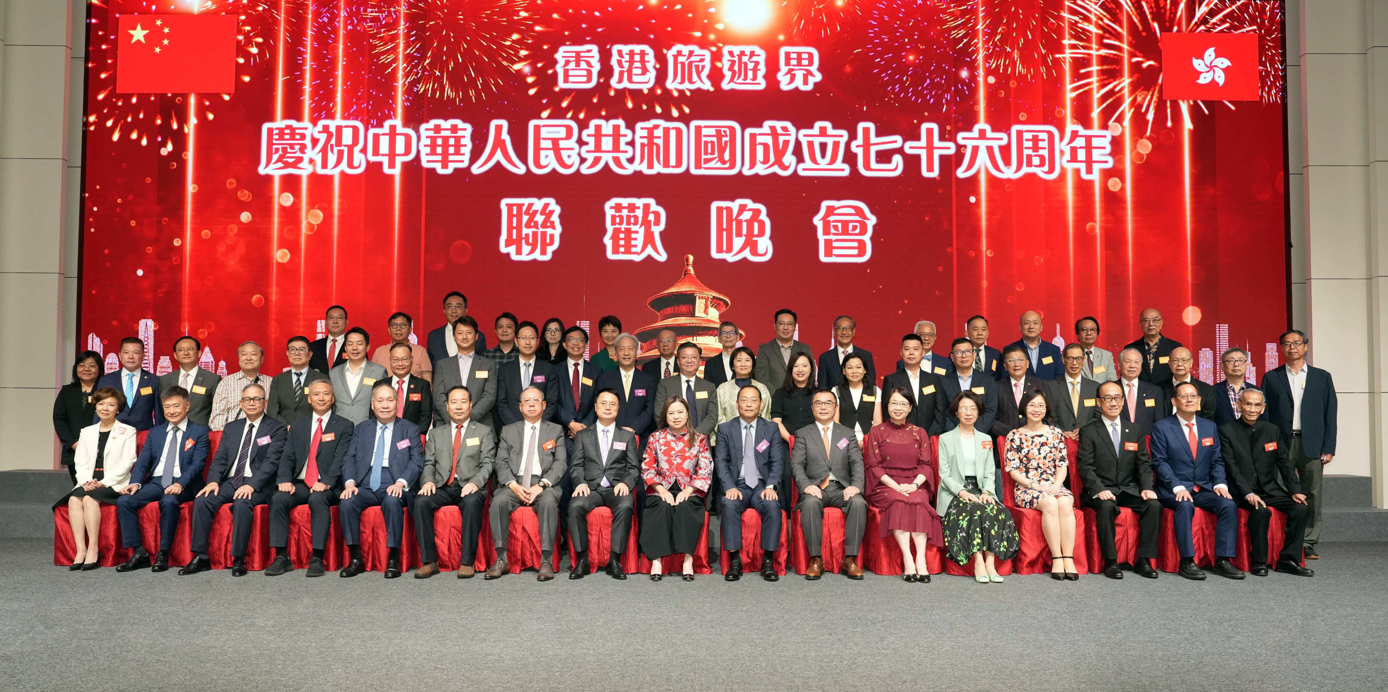 9月17日,,,,,,,,香港旅游界举行庆祝中华人民共和国建设七十六周年联欢晚会。。。。。。。。集团副总司理浅易出席并主持祝酒仪式,,,,,,,,中联办经济部副部长郭韶伟、外交部驻港公署办公室主任刘孝明、香港文体旅局局长罗淑佩、香港旅发局主席林建岳、旅游界立法聚会员姚柏良等嘉宾配合主礼。。。。。。。。