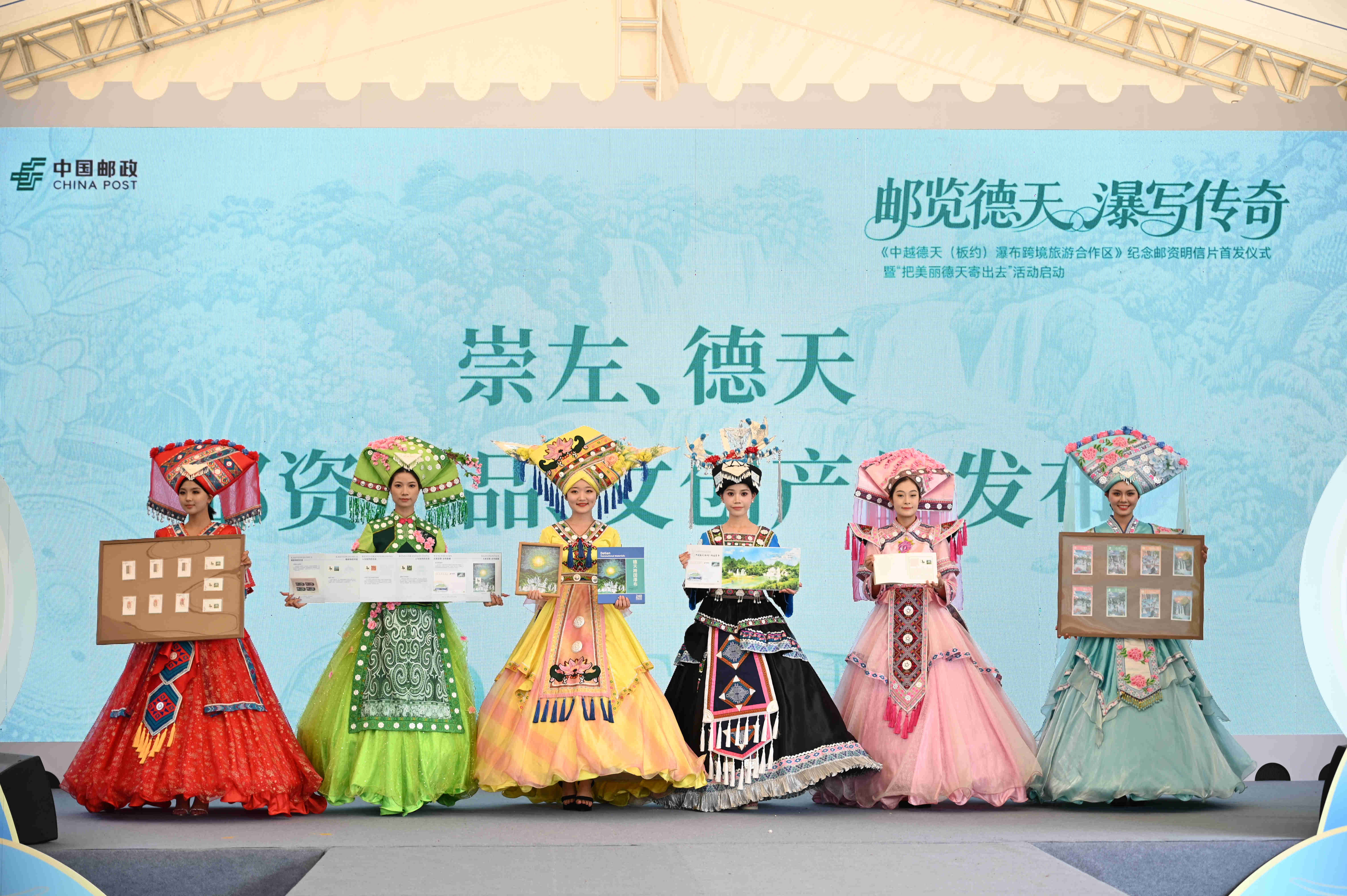 9月15日,,,,,,,《中越德天(板约)瀑布跨境旅游相助区》纪念邮资明信片首发仪式暨“把漂亮德天寄出去”运动在中旅国际所属德天景区正式启动,,,,,,,现场宣布纪念邮资明信片等系列文创产品。。。。。