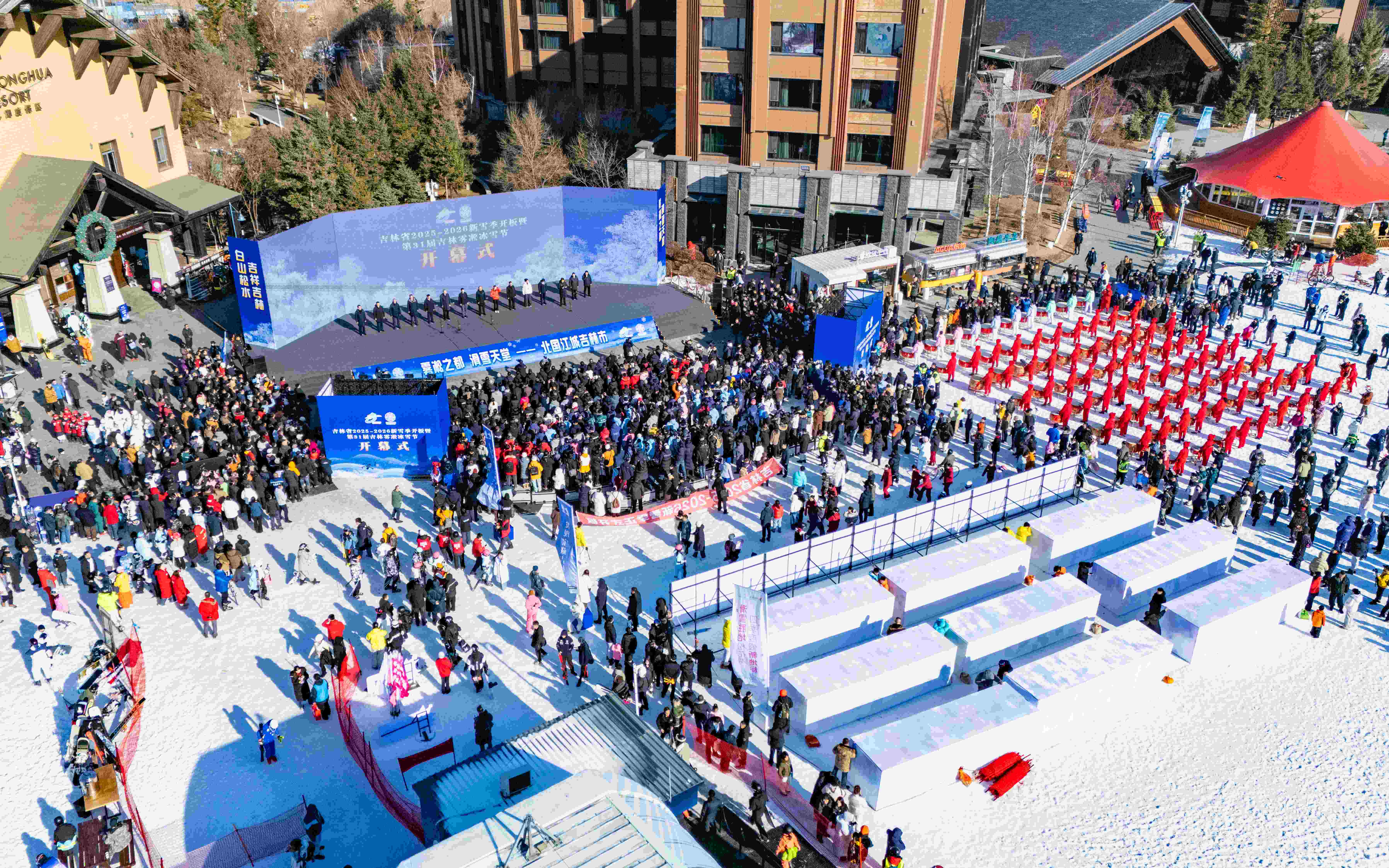 11月22日,,,,,,,,由吉林省文旅厅、吉林市人民政府主理,,,,,,,,吉林市文广旅局承办,,,,,,,,中旅松花湖度假区协办的吉林省2025-2026新雪季开板暨第31届吉林雾凇冰雪节开幕式在中旅松花湖度假区举行。。。。。。。吉林省委书记黄强,,,,,,,,省委副书记、省长胡玉亭,,,,,,,,集团董事长王海民、总司理范云军等嘉宾及媒体、开板俱乐部代表共5000余人出席。。。。。。。