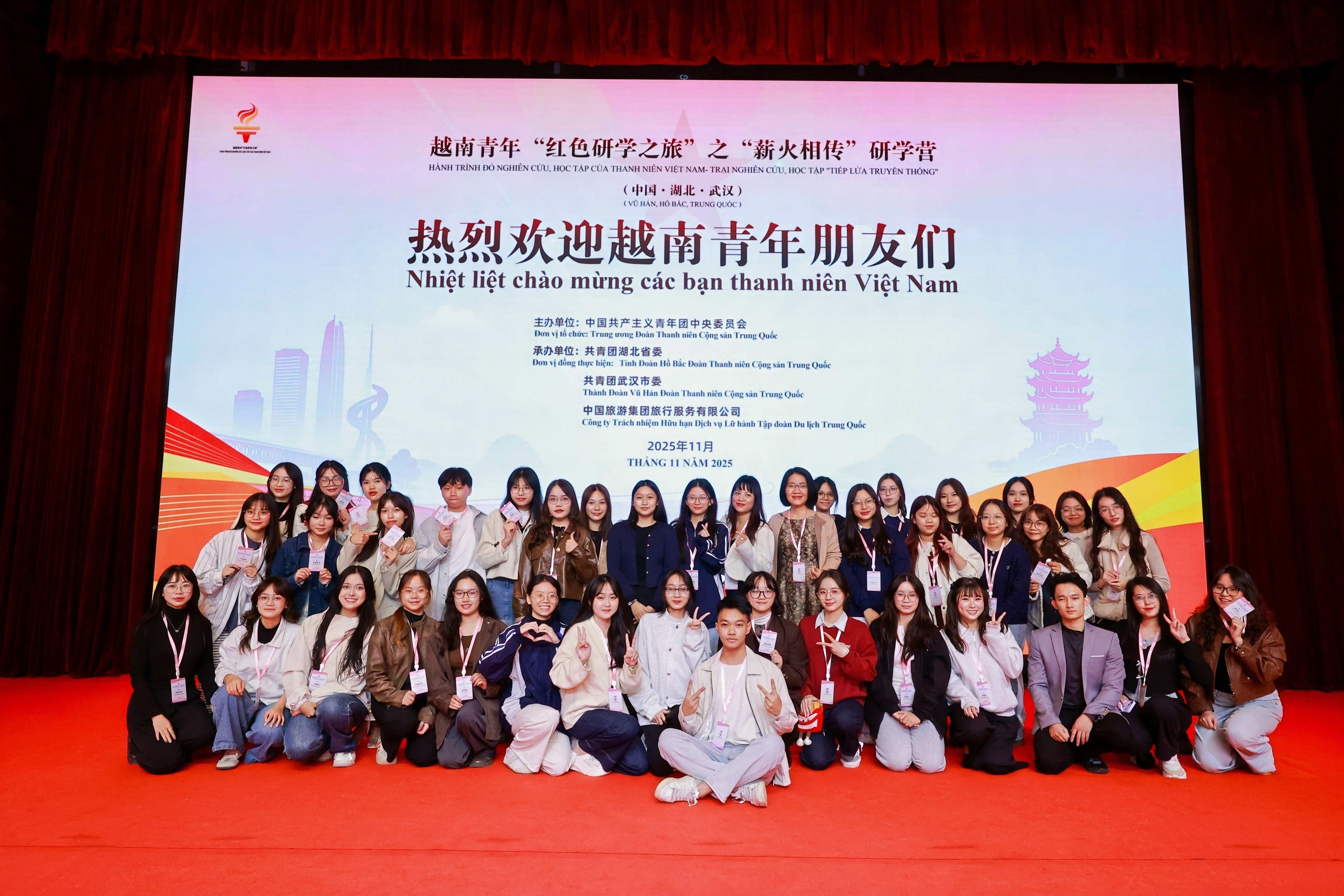 继圆满完成首期“红星闪灼”研学营后,,,,,,中旅旅行再次乐成承办“薪火相传”研学营,,,,,,所属中旅商旅、湖北中旅组建专项团队,,,,,,通过中越双语报名系统,,,,,,实现报名、资料数字化治理,,,,,,解决学员语言障碍;;;;;;;全心设计行程,,,,,,涵盖武汉、重庆两地“红色足迹”“中国智造”“中原文脉”等研学资源,,,,,,并让越南青年走进中国高校,,,,,,围绕科技立异、社会实践分享体会,,,,,,共话未来。。。。。。。