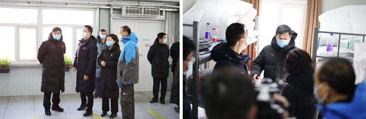 赵市长实地调研了团队驻地的员工用餐和住宿情形,,,,,,慰问了现场事情职员,,,,,,强调疫情防控事情要绝不松懈,,,,,,一连包管好员工用餐,,,,,,做好防寒保暖事情。。。。。。。。赵市长指出,,,,,,中旅团队驻地作为标杆基地项目,,,,,,张家口市政府对基地建设和防疫事情高度认可,,,,,,希望中旅集团能够进一步施展央企的“传帮带”作用,,,,,,实时总结消防、防疫、建设、治理等各方面履历,,,,,,把好的履历做法教授给其他类职员的包管基地。。。。。。。。中旅旅馆党委委员、副总司理、中旅冬奥会效劳项现在方总指挥陈月亮同志体现,,,,,,中旅团队将起劲总结履历供相关基地借鉴,,,,,,愿意与相关基地增强交流、取长补短,,,,,,配合完善基地建设,,,,,,协力确保冬奥会相关效劳职员后方生涯的清静稳固。。。。。。。。