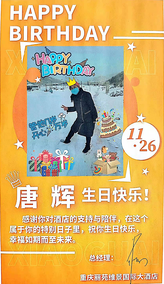 ÏóÍù³£Ò»Ñù£¬£¬£¬£¬£¬£¬ÎÒ»¹ÔÚΪ²É¹ºµÄÊÂÇ鿵Ľ¹Í·Àö£¬£¬£¬£¬£¬Í»È»ÊÖ»ú´«À´Î¢ÐŵÄÌáÐÑÒô£¬£¬£¬£¬£¬£¬»¹ÒÔΪÓÖÓÐʲôÊÂÇéÒª×ö£¬£¬£¬£¬£¬£¬·¿ªÎ¢ÐŽçÃæµÄһɲÄÇ£¬£¬£¬£¬£¬£¬ÎÒ˲¼äÀáÄ¿¡£¡£¡£¡£¡£ÎÒµÄÍâ¼Ò¡ª¡ªÖØÇìÀöԷά¾°¹ú¼Ê´óÂùݣ¬£¬£¬£¬£¬£¬²¢Ã»ÓÐÒÅÍüÔ¶ÔÚ³çÀñÖ§Ô®¶¬°ÂµÄÎÒ£¬£¬£¬£¬£¬£¬×¨ÃÅΪÎÒÂ¼ÖÆÁËÒ»¶ÎÉúÈÕ×£¸£ÊÓÆµ£¬£¬£¬£¬£¬£¬ÖÆ×÷ÁËÒ»ÕÅÉúÈÕº£±¨£¬£¬£¬£¬£¬£¬ÂùÝ×Ü˾ÀíФ÷×Ü»¹Ç×±ÊΪÎÒËÍÉÏ×£¸£¡£¡£¡£¡£¡£¸÷È˵Ä×£¸£ÓëÃãÀøÈÃÎÒÐÄÀïůůµÄ£¬£¬£¬£¬£¬£¬ÓС°Íâ¼ÒÈË¡±ÎªÎÒ³ÅÑü£¬£¬£¬£¬£¬£¬ÎÒ¶¨È»¡°ÐÛÆð¡±£¡