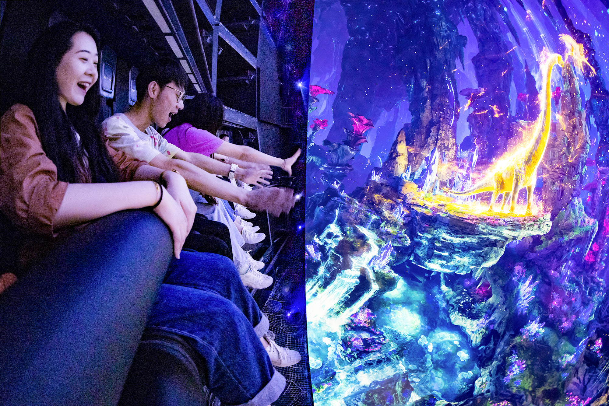 在“方特恐龙王国”,,,,,,,,游客既可以与翼龙偕行遨游蓝天,,,,,,,,俯瞰史前地球景物、壮丽美景;;;;;;;;也可以深着迷秘河谷,,,,,,,,与恐龙近距离接触;;;;;;;;还能探寻地下天下,,,,,,,,感受古蜀文明。。。。。。。