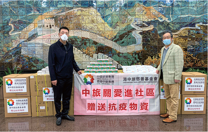 香港第五波疫情形势一连严肃,,,,,,单日确诊数字高企不下,,,,,,周全防控疫情扩散、全力包管市民康健清静到了最紧要的关头。。。。。。。。为坚决贯彻落实习近平总书记关于支援香港抗击第五波新冠肺炎疫情事情的主要指示精神,,,,,,切实推行驻港央企的社会责任,,,,,,集团及所属在港企业一连开展「中旅关爱进小区」运动。。。。。。。。3月6日,,,,,,集团再度捐赠600 余万港币的抗疫物资,,,,,,继续支持香港社会防疫抗疫事情。。。。。。。。集团副总司理石善博专程来到观塘双顺小区,,,,,,慰问集团员工、观塘区议员符碧珍,,,,,,并向小区捐赠了防护口罩、连花清瘟胶囊、快速检测盒等抗疫物资。。。。。。。。
